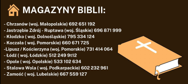 Aby otrzymać darmowy egzemplarz Biblii, wystarczy zgłosić się do jednego z magazynów z Bibliami, które rozlokowane są po całej Polsce. Poniżej znajduje się lista aktualnych lokalizacji, wraz z danymi kontaktowymi do poszczególnych punktów.